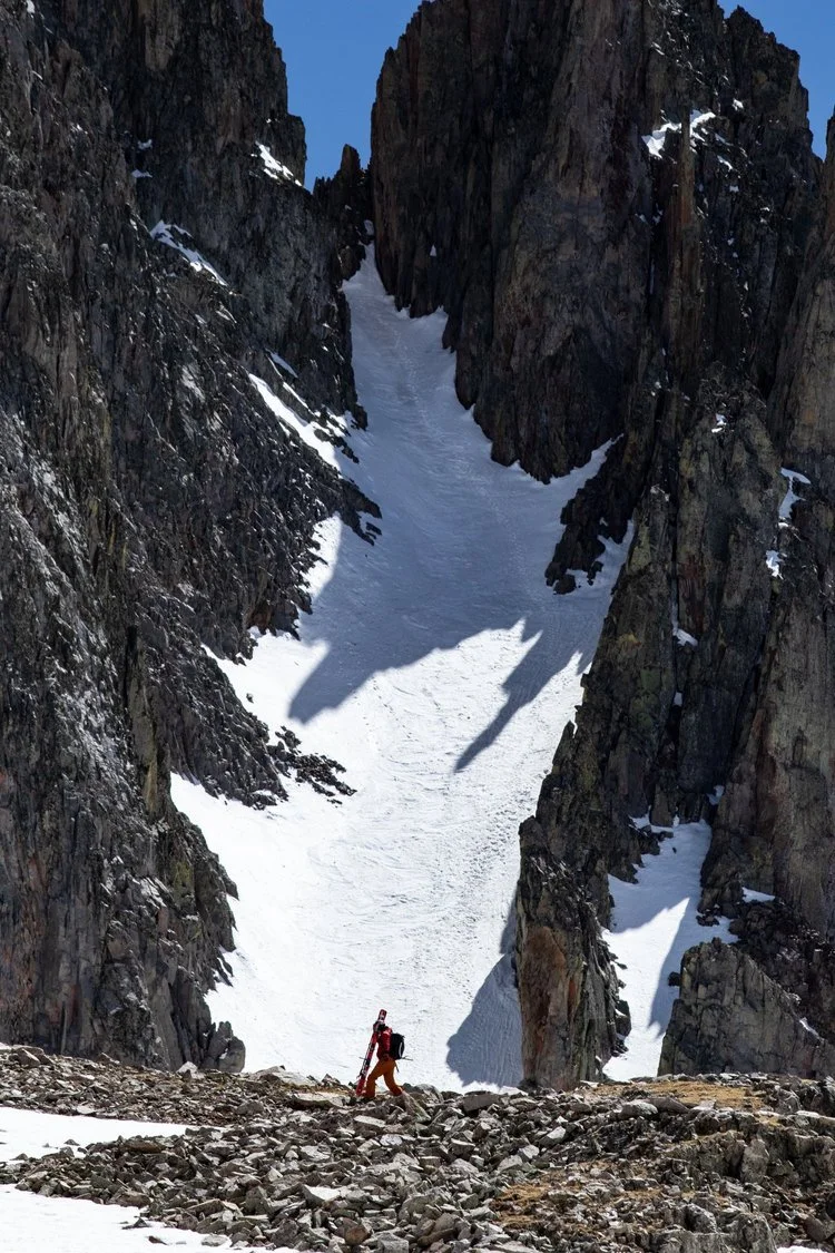 “Those sounds of ceremony, of the ceremonial rattle created by the snow, echoing from the couloir walls on Dibe Nitsaa, still fill my ears many years later. The top of the couloir appeared more quickly than I had expected. The rhythmic compression of my ski boots into the snow, the strain of every step, the labor of every breath—these sensations mirrored earlier experiences created in sweat lodges. This mountain, just like those ceremonies, taught me that relegating the pain and tiredness to the background and focusing on the small victories of each movement upward would get me through any obstacle.”